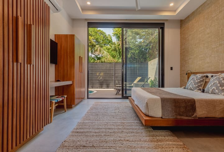 This brand new residence in Nosara’s lush jungle has just opened! It’s just a stroll away from pristine beaches, restaurants, coffee shops, and groceries. Our luxurious villas promise modern comfort wrapped in Costa Rican allure. Relish eco-conscious designs, homey interiors, and while sipping world-famous Costa Rican coffee. Immerse into a blend of relaxation and nature’s charm, where every detail is crafted for your serenity.